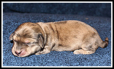 Libby dilivered a singleton pup, a shaded cream long hair female!