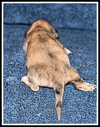 Reba delivered two lil girls, one blk/tan & one cream...coats pending. These girls were very small at birth, but are now gaining and thriving, thank God!!