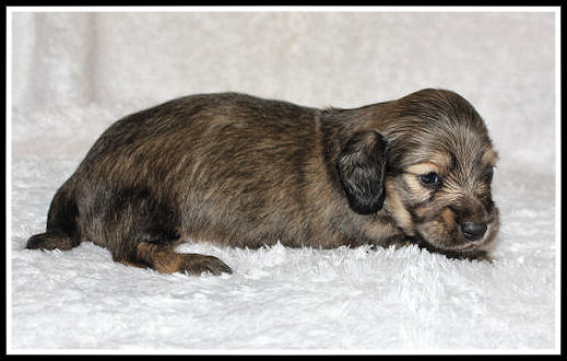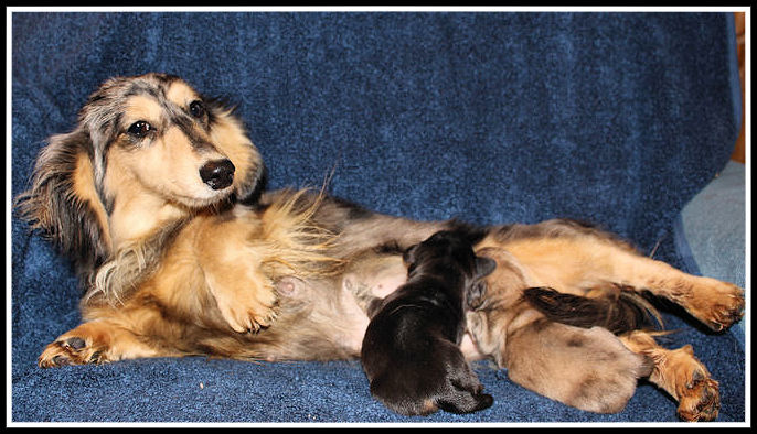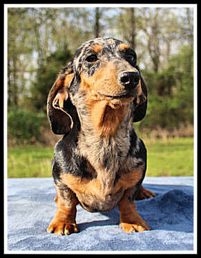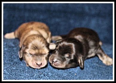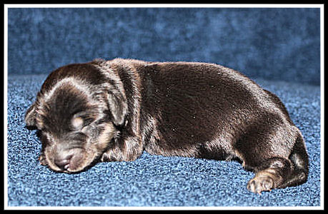Trinity & Sterling have two stunning pups! Unfortunately the second one born took too long and didn't survive. This will be Trinity's first litter. Both long & smooth coats possible. We have a smooth blk/tan dapple female that carries for chocolate.